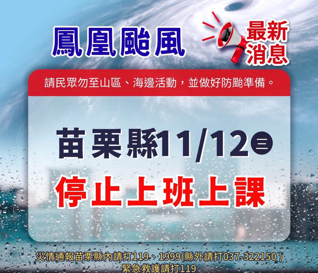 11/12颱風假公告